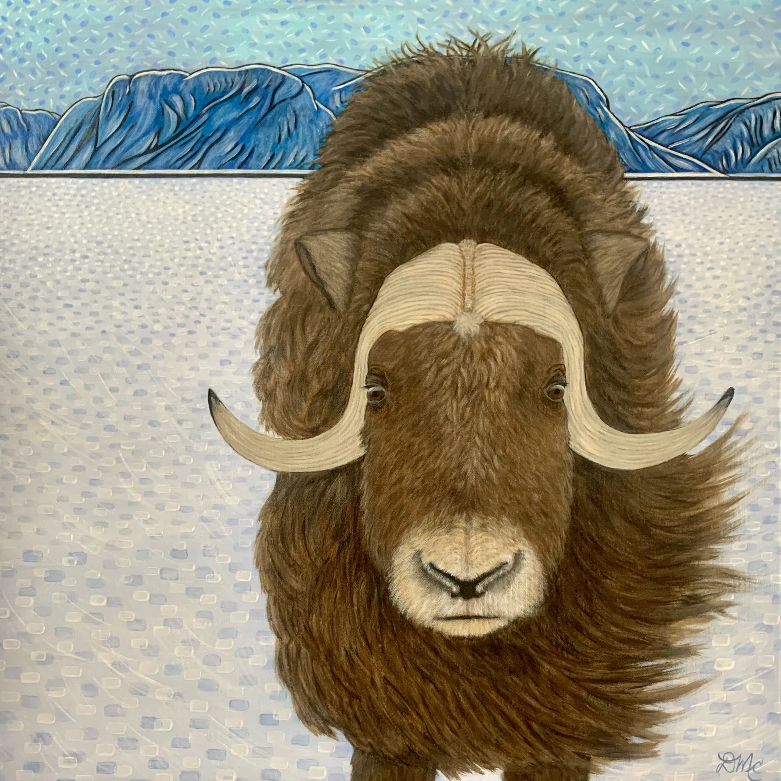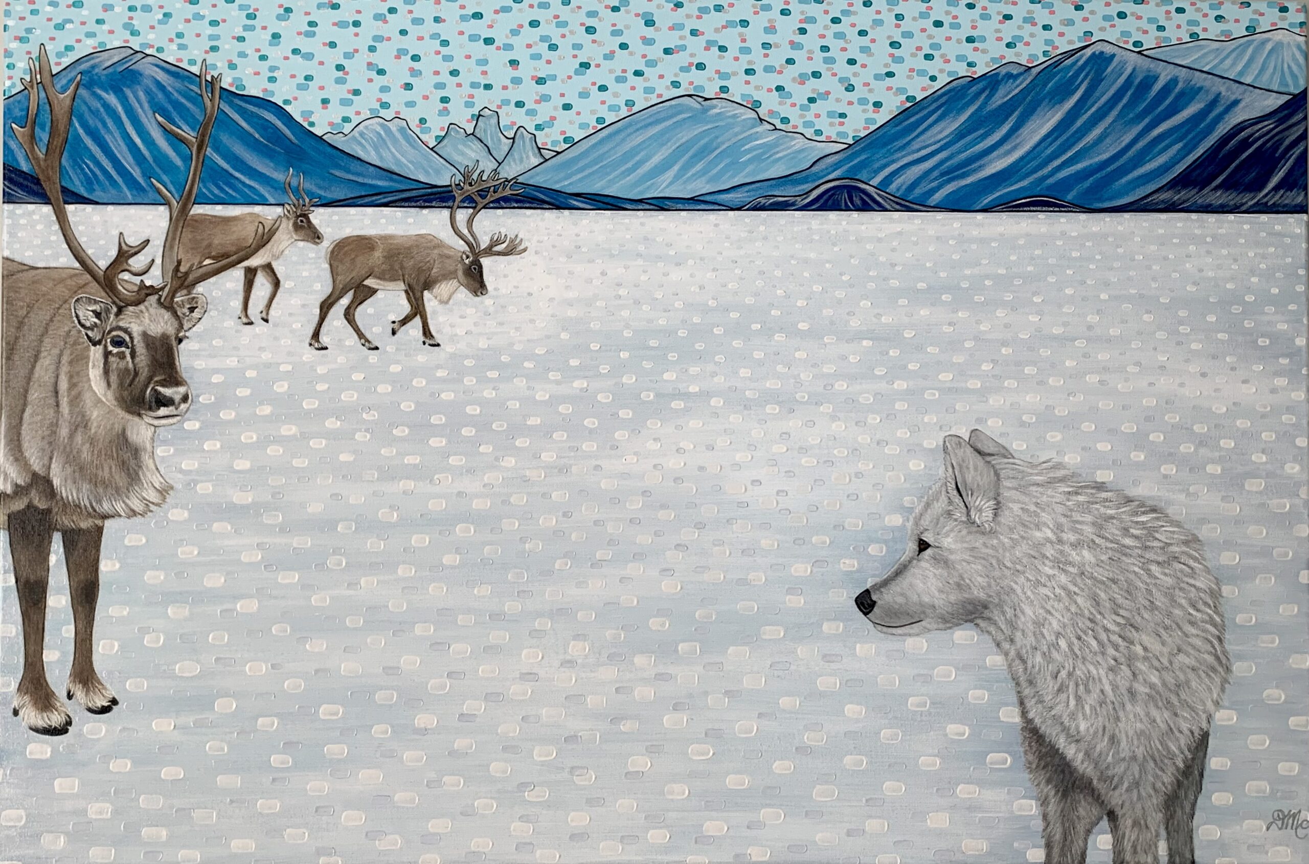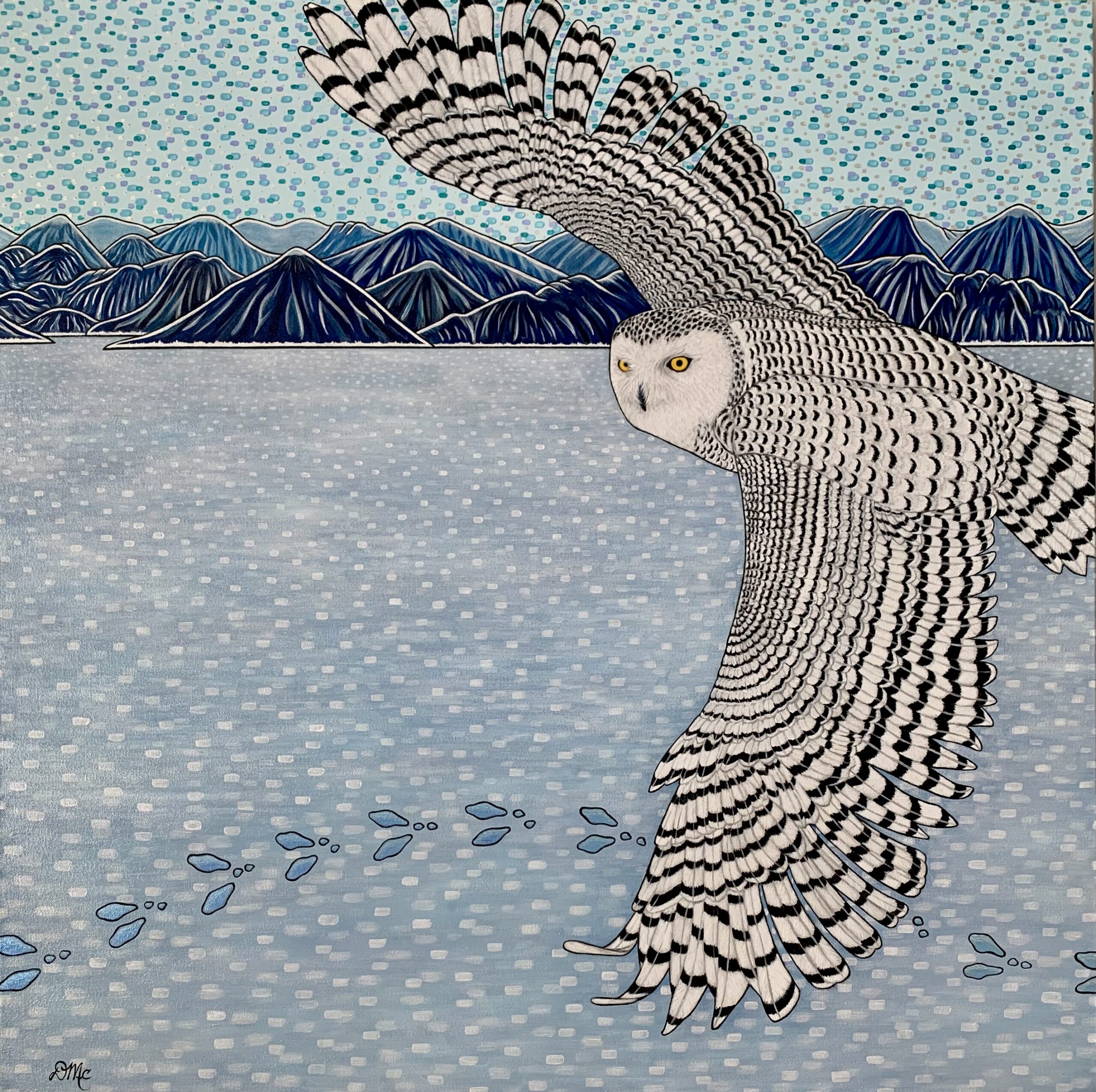 • Snowy Pursuit, acrylic on canvas, 36″x36″